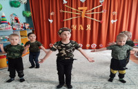 Ежегодно в нашем детском саду проходит тематическая неделя к празднику "День защитника Отечества". С большим интересом воспитанники с помощью воспитателей изготавливают из разного материала подарки для любимых пап, дедушек. Как итоговое мероприятие тематической недели "День защитника Отечества", 6 мая в саду прошло музыкально - спортивное развлечение. Дети читали стихи, пели песни, проявляли ловкость и мужество. Праздник проходил в форме игры и состоял из различных эстафет