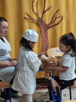 Дети с интересом распределили роли — кто-то стал доктором Айболитом, кто-то медсестрой, а другие принесли своих «больных» зверят. В игре звучали вопросы и советы, проводились «осмотры», «измерялась температура», выписывались «рецепты» и рекомендации по уходу.